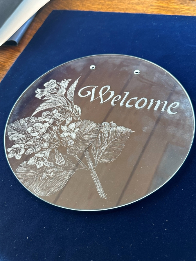 Welcomeボードとして、「Welcome」の文字とお花を生徒さんに彫っていただいているそうです。